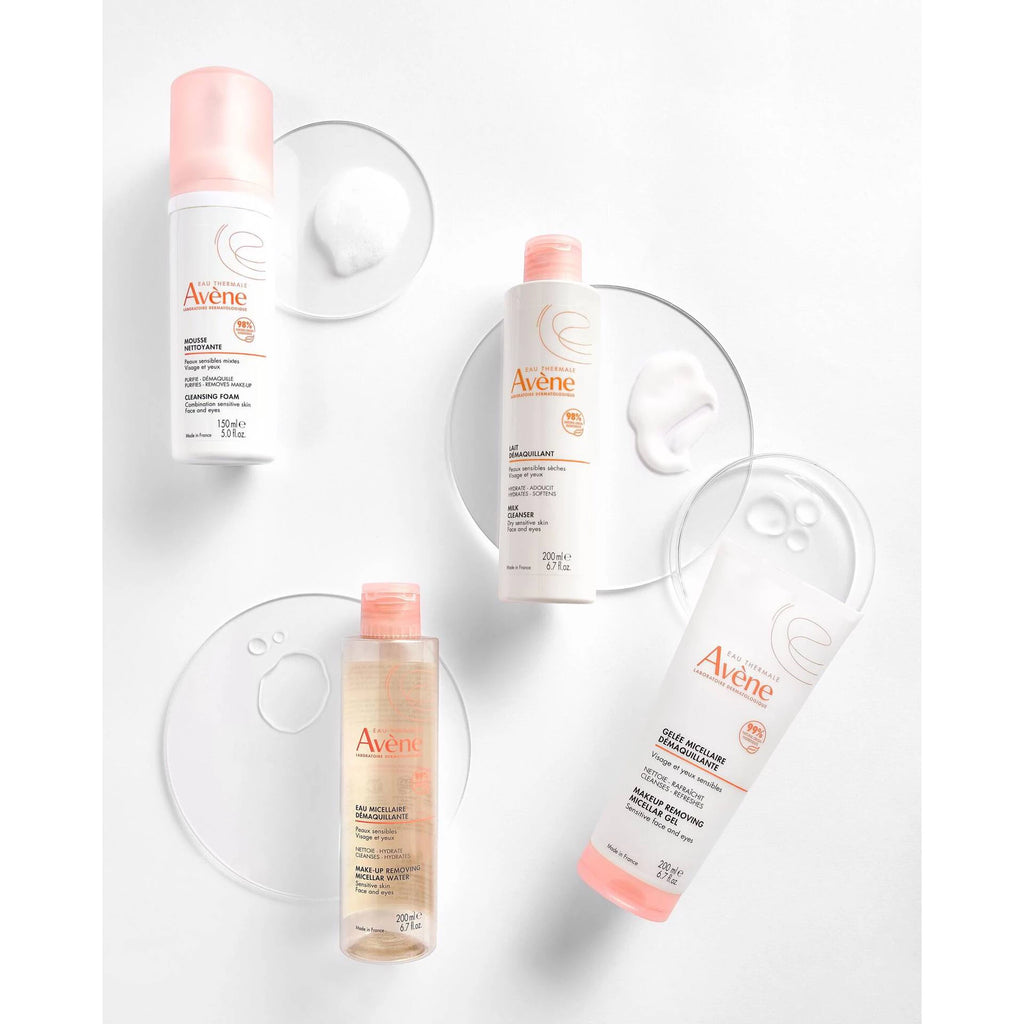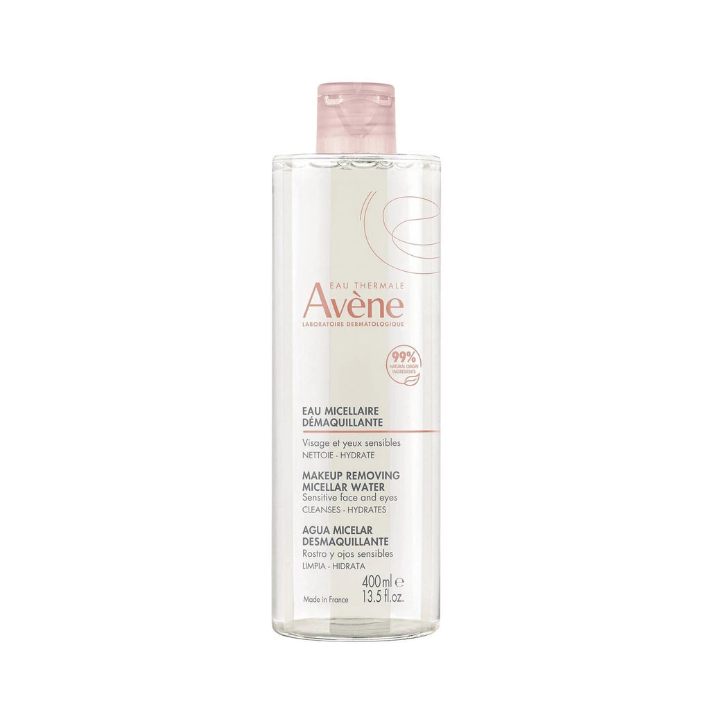 Avène Les Essentiels Água Micelar Desmaquilhante 400ml é uma água que remove a maquilhagem, limpa (até as partículas de poluição), hidrata e acalma num só movimento o rosto e olhos sensíveis. Melhora a hidratação e preserva o equilíbrio natural da pele graças à sua combinação de glicerina, trealose e alta concentração de Água Termal Avène com propriedades calmantes. Sua fórmula incorpora o mínimo de ingredientes na dose certa, para garantir eficácia e tolerância dermatológica.