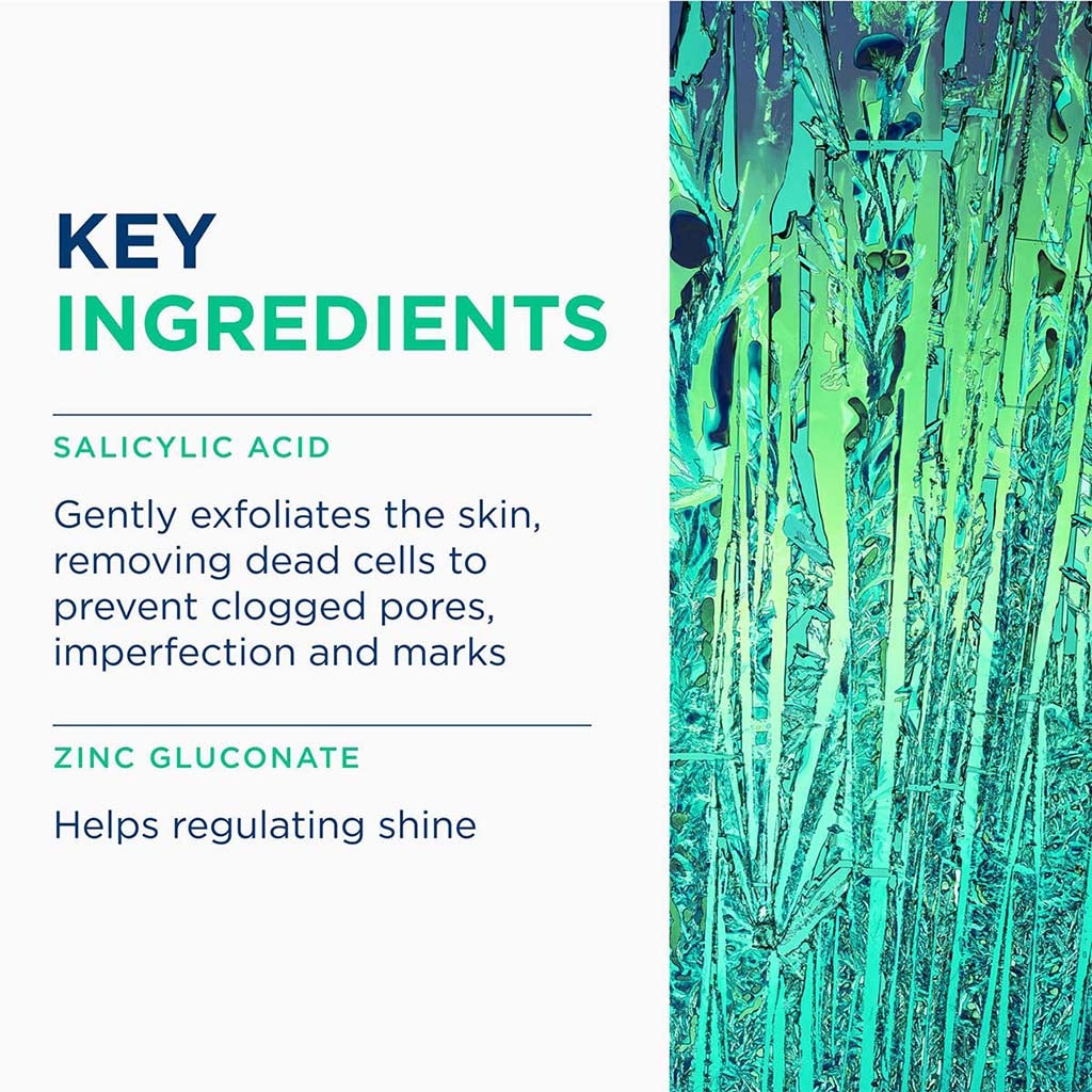 INCI Formula: AQUA/WATER/EAU, CAPRYLYL/CAPRYL GLUCOSIDE, PROPANEDIOL, GLYCERIN, ZINC GLUCONATE, SALICYLIC ACID, GLYCOLIC ACID, COCO-GLUCOSIDE, GLYCERYL OLEATE, SODIUM HYDROXIDE, CELLULOSE GUM, XANTHAN GUM, CITRIC ACID, MANNITOL, SODIUM CITRATE, XYLITOL, INULIN, SODIUM METABISULFITE, RHAMNOSE, CELLULOSE, FRUCTOSE, GLUCOSE, FRUCTOOLIGOSACCHARIDES, TOCOPHEROL, HYDROGENATED PALM GLYCERIDES CITRATE, FRAGRANCE (PARFUM). [BI 2005]