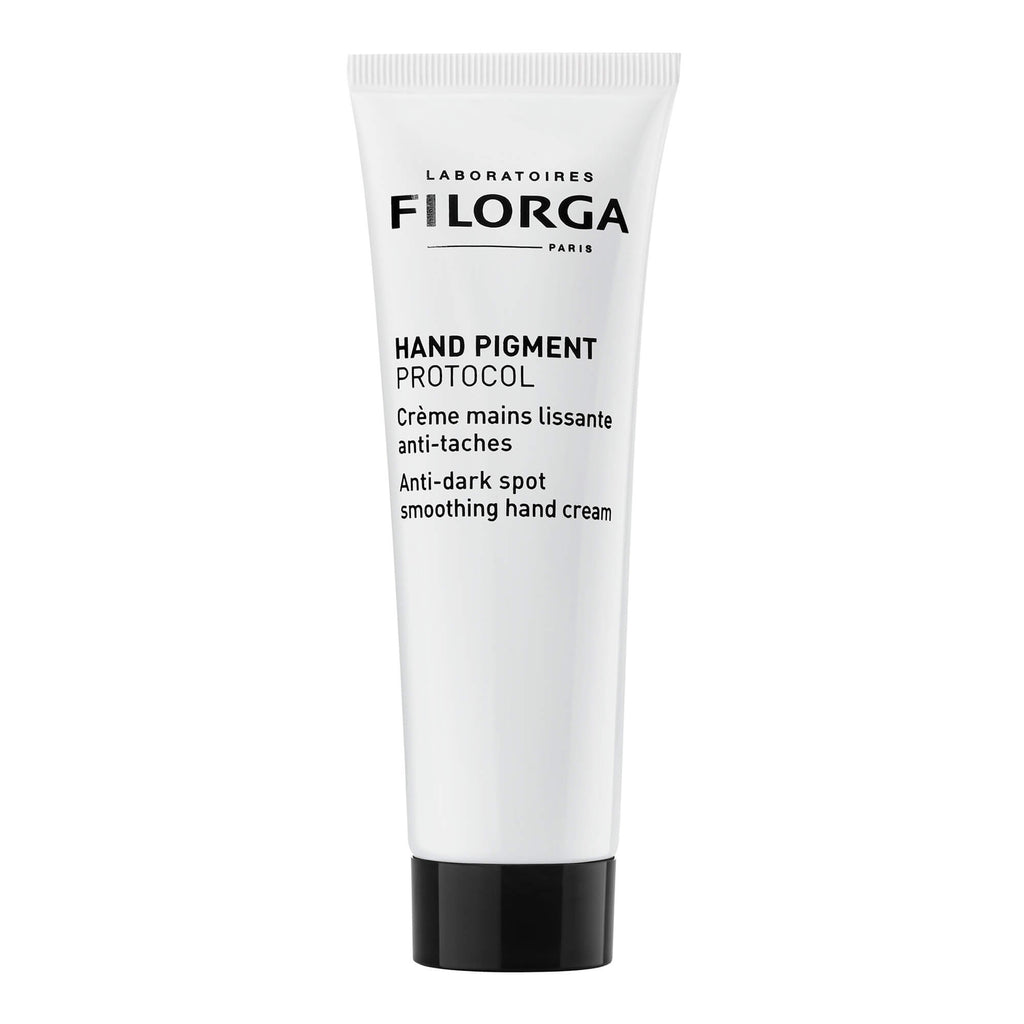 Filorga Hand Pigment Protocol é um creme de mãos anti-manchas inspirado em procedimentos a laser de recapeamento, projetado para reduzir visivelmente a pigmentação, uniformizar o tom da pele e hidratar profundamente as mãos. Seu complexo Photo-control combina vitamina C, conhecida por sua ação iluminadora sobre manchas escuras e hiperpigmentação. Os flavonóides com efeito rejuvenescedor melhoram a textura da pele, tornando as mãos mais suaves e jovens. O ácido hialurônico encapsulado proporciona hidratação profunda e duradoura, proporcionando conforto e maciez. O exclusivo complexo NCEF, desenvolvido pela FILORGA, estimula a revitalização celular. Dia após dia, as mãos ficam mais suaves, mais uniformes e menos ásperas.