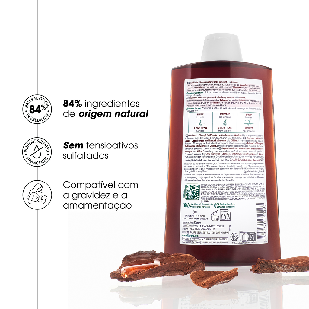 Este champô devolve ao cabelo força. Graças à sua fórmula enriquecida em Vitaminas B, extrato de quinquina e Edelvaisse BIO, limpa o cabelo ao mesmo tempo que favorece o seu crescimento. Pode ser utilizado sozinho ou em complemento do cuidado antiqueda.