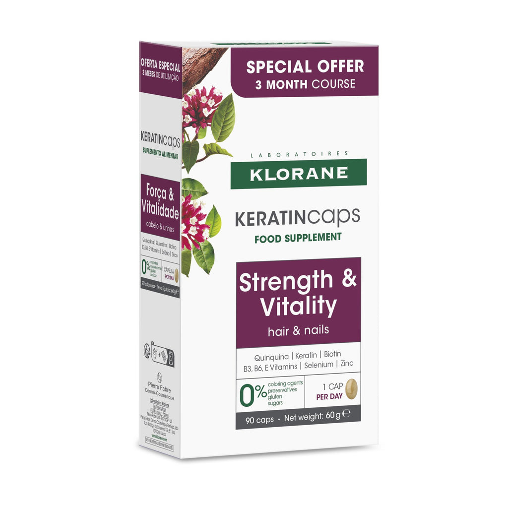 Klorane Capilar Keratincaps Cápsulas é um pack constituído por três embalagens de 30 cápsulas.