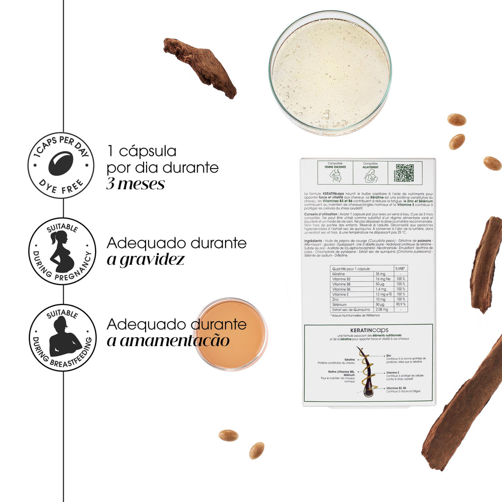 Klorane Capilar Keratincaps Cápsulas é um pack constituído por três embalagens de 30 cápsulas (3x30 cápsulas).
