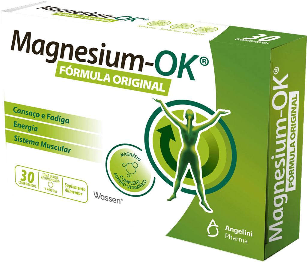 Magnesium-Ok contém magnésio que contribui para: - a redução do cansaço e da fadiga; - o normal metabolismo produtor de energia; - o normal funcionamento muscular e do sistema nervoso; - uma normal função psicológica; - o processo de divisão celular. É isento de glúten, derivados de leite, lactose e sacarose.