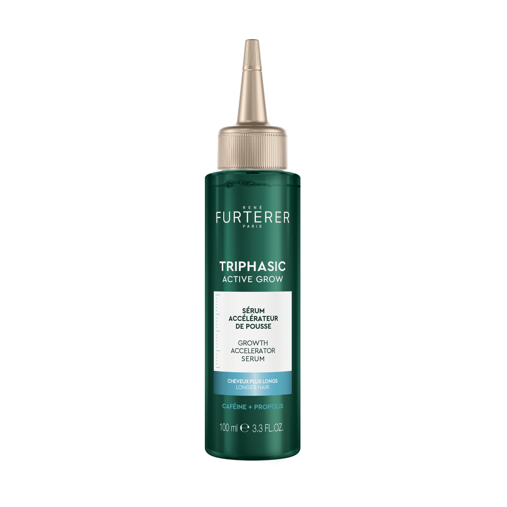 A gama Triphasic Active Grow da René Furterer apresenta uma fórmula ultrapotente que acelera o crescimento e ativa a queratina para o ajudar a exibir um cabelo mais forte e comprido. O sérum acelerador de crescimento estimula o crescimento natural do cabelo e foi especialmente desenvolvido para potenciar o crescimento de cabelos mais longos. A sua fórmula avançada combina um poderoso complexo de ingredientes ativos: uma tecnologia única à base de própolis que ativa a produção de queratina desde a raiz, aliada à cafeína, que estimula a microcirculação e reativa o crescimento capilar. Com uma textura inovadora, de acabamento invisível e não oleoso, é ideal para uso diário.