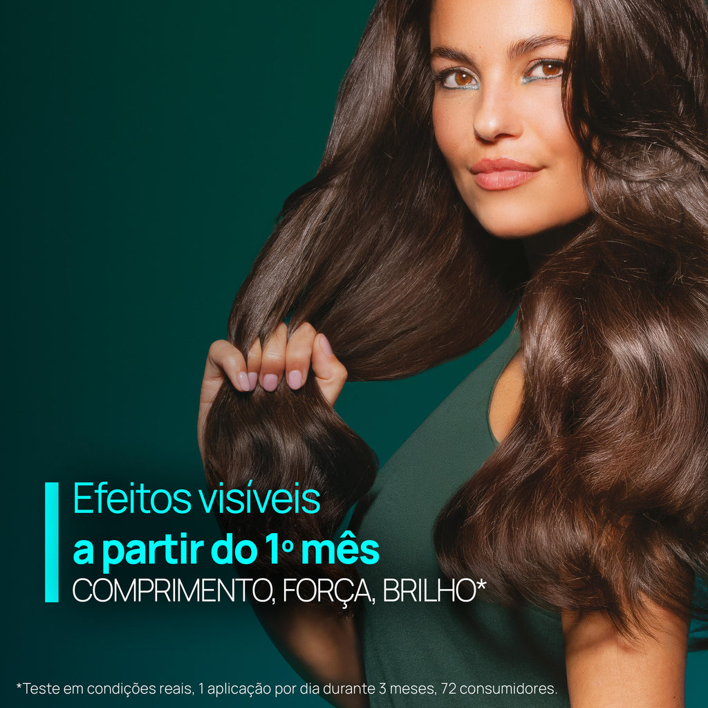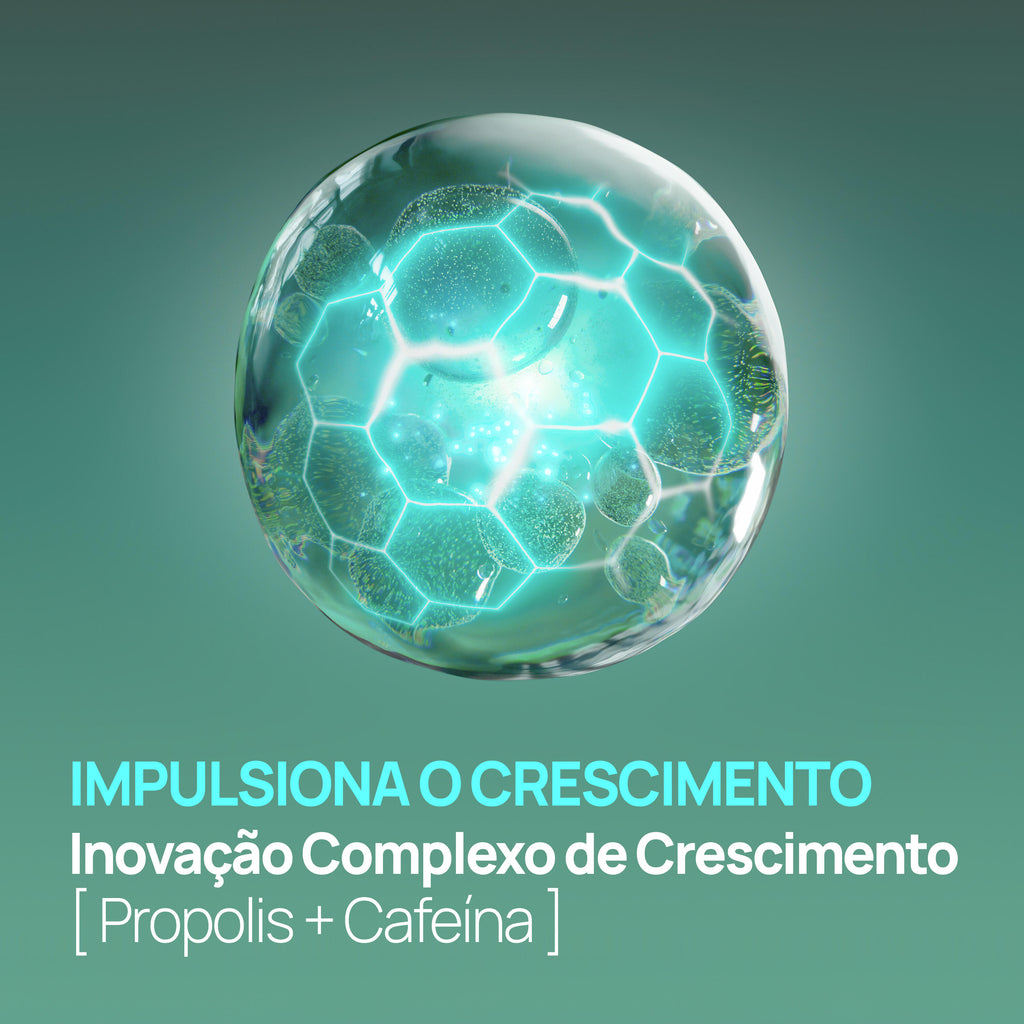 Cafeína: estimula a microcirculação do couro cabeludo. Biotina: promove a síntese de queratina e a força dos cabelos. Própolis: ação estimulante e nutritiva. Extrato de ginseng, óleos essenciais de alecrim e altauronato de sódio: auxiliam no crescimento e na hidratação. Álcool desnaturado, glicerina e fragrância suave.