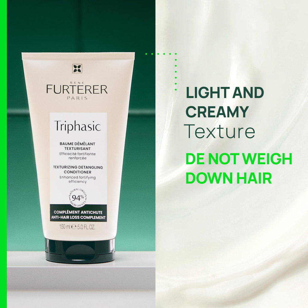 Rene Furterer Antiqueda Triphasic Bálsamo: Graças ao seu complexo de ingredientes ativos antiqueda (extrato natural de Pfaffia e ATP), este bálsamo desembaraçador texturizante integra-se perfeitamente no ritual antiqueda Triphasic. Enriquecido em proteínas de trigo que dão textura, consolida a estrutura dos cabelos desde a raiz, desembaraça perfeitamente e proporciona um volume visível deixando a fibra capilar mais resistente. Rene Furterer Antiqueda Triphasic Champô Estimulante: Contém ingredientes que têm uma ação antiqueda. Nutre o cabelo, deixando-o mais forte. O cabelo fica suave e mais fácil de desembaraçar. Sem silicone.