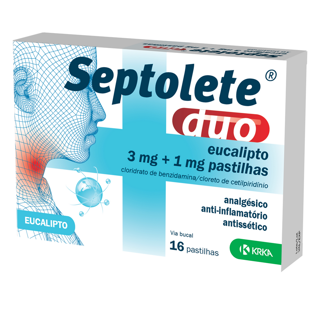 Septolete Duo Eucalipto 3mg+1mg está indicado em adultos, adolescentes e crianças com idade superior a 6 anos no tratamento anti-inflamatório, analgésico e antissético de irritações da garganta, da boca e das gengivas, na gengivite e na faringite.