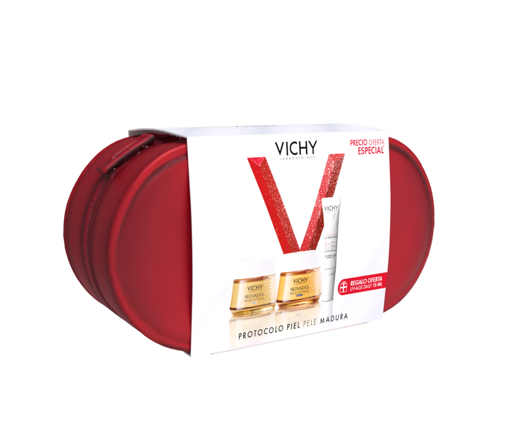 Coffret Pele Madura Vichy Neovadiol Magistral Balsamo Dia 50ml + Magistral Creme Noite 50ml + oferta de UV-Age Daily SPF50+ (15ml).